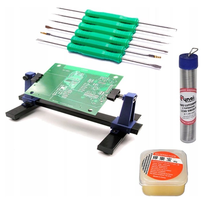 Set mit Hilfswerkzeugen zum Löten – vielseitig einsetzbar bei der Montage von Leiterplatten sowie beim Löten verschiedener Anschlüsse.