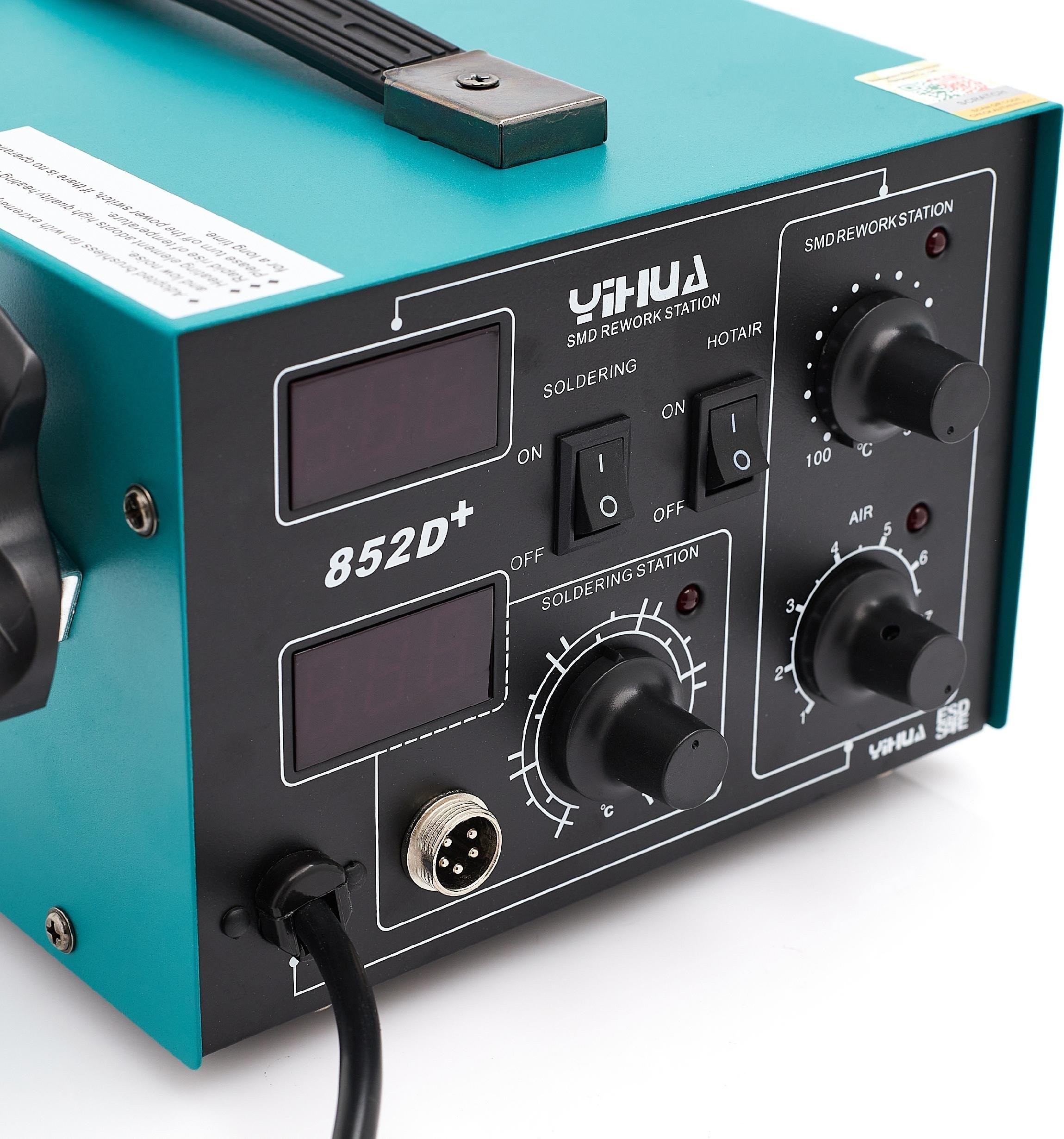 ⚡ Das bewährte Modell der Lötstation Yihua 852D+ nutzt viele bewährte Lösungen. Die Station 852D+ zeichnet sich vor allem durch eine mit bloßem Auge erkennbare, unvergleichliche Qualität aus.