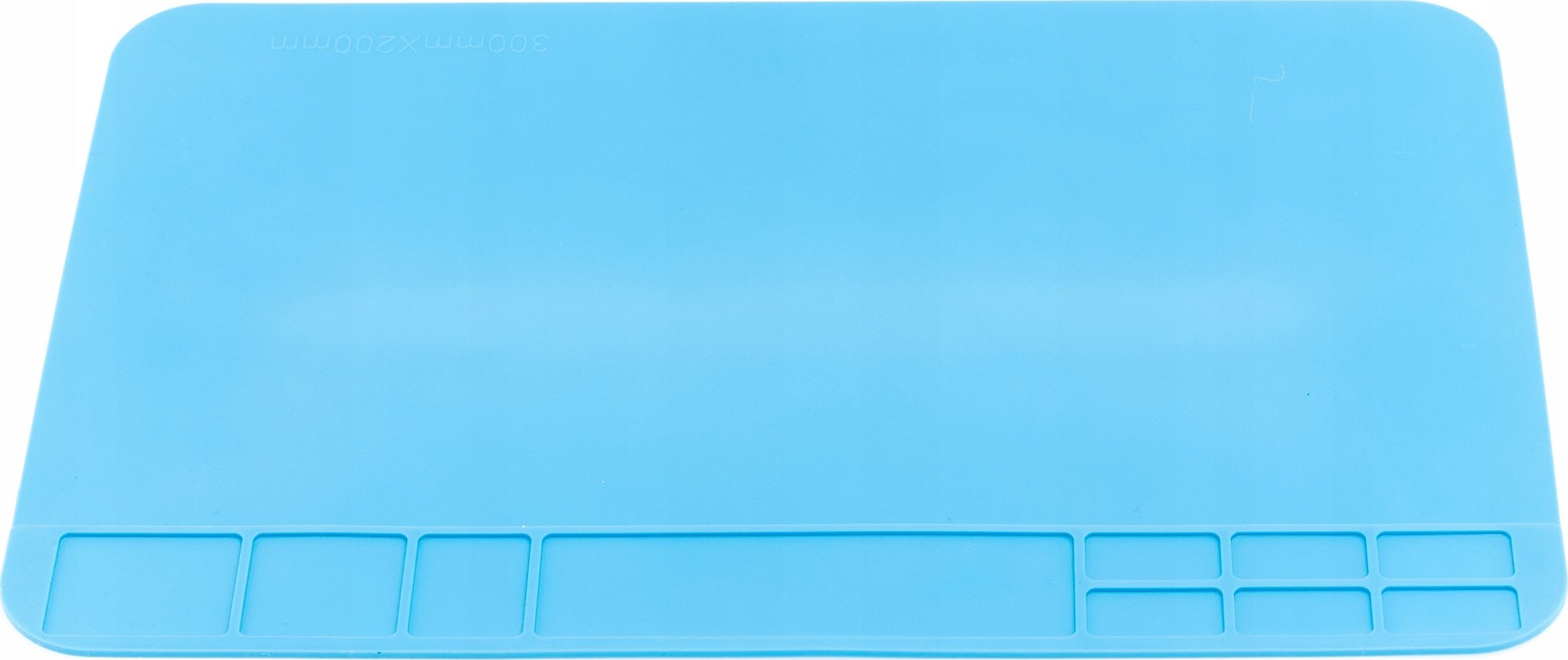 Hochwertige Silikonmatte mit profilierten Fächern für mehr Arbeitskomfort in jeder Werkstatt. Die antistatischen Eigenschaften und speziellen Fächer ermöglichen die Organisation und Sortierung von Elektronikbauteilen, Schrauben usw. während der Arbeit. Die große, flache Oberfläche und die hohe Temperaturbeständigkeit ermöglichen das Löten von Platinen und Bildschirmen direkt auf der Matte. Die Matte ist beständig gegen sehr hohe Temperaturen bis zu 500 °C und ermöglicht das Löten direkt auf der Matte. Sie ist mit mehreren verschiedenen Fächern ausgestattet, in denen z. B. Schraubendreher, Schrauben, Flussmittel, Zinn und andere kleine, im Servicebereich verwendete Teile untergebracht werden können. Sie eignet sich ideal für Werkstätten, die sich mit der Reparatur von Mobiltelefonen, Tablets und Computern befassen, sowie für andere Bereiche, in denen eine solide, hochtemperaturbeständige Antistatikmatte benötigt wird. Die Matte kann mit Wasser, Isopropylalkohol oder einer anderen Reinigungsflüssigkeit für Leiterplatten gereinigt werden. Die Matte ist mit Organizern ausgestattet, die es ermöglichen, den Arbeitsplatz perfekt in Ordnung zu halten – alle Schrauben und andere Metallkomponenten befinden sich an einem Ort.