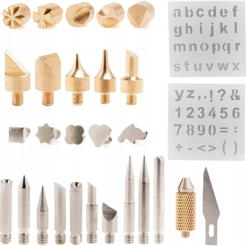 5️⃣ Set mit 48 verschiedenen Spitzen, Aufsätzen und Schablonen zum Brennen / Pyrografieren