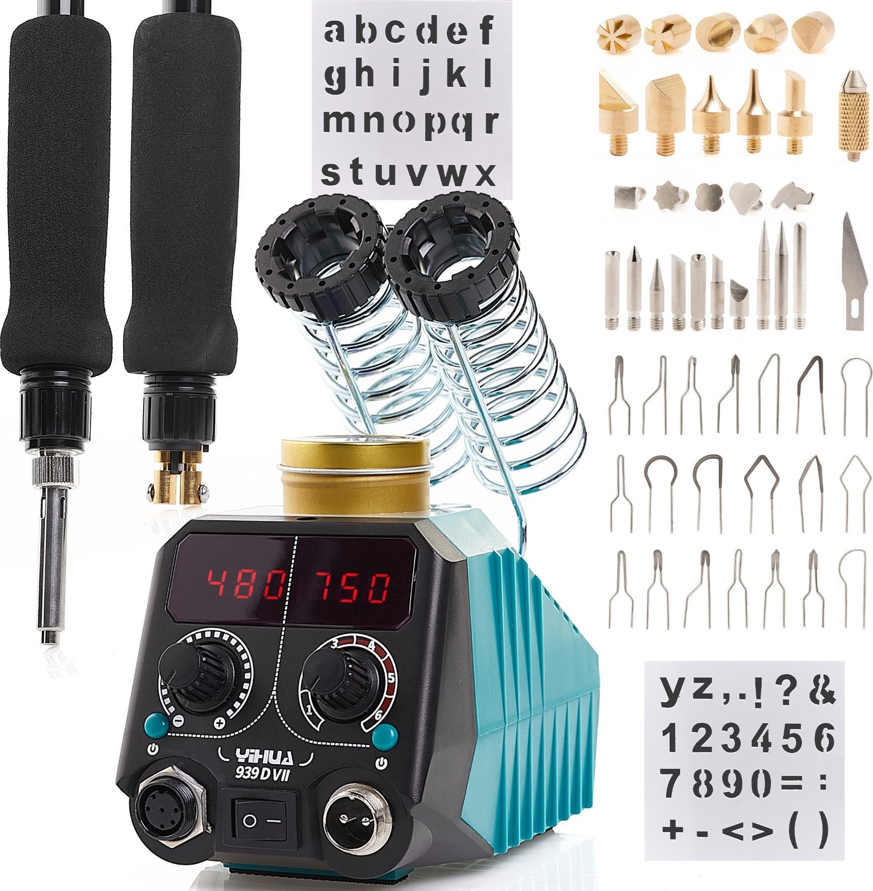 Holzbrandmalgerät Yihua 939D-VII mit zwei Brennern und 48 Spitzen