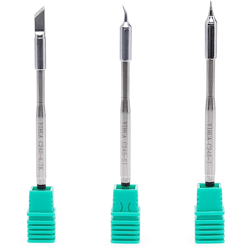 Im Lieferumfang der Yihua 982-I sind drei C210-Spitzen und drei C245-Spitzen enthalten, was für Vielfalt und Flexibilität beim Löten sorgt. Diese Spitzen sind mit einem Heizelement und einem Temperatursensor ausgestattet, was ein schnelles Aufheizen und präzises Arbeiten gewährleistet.