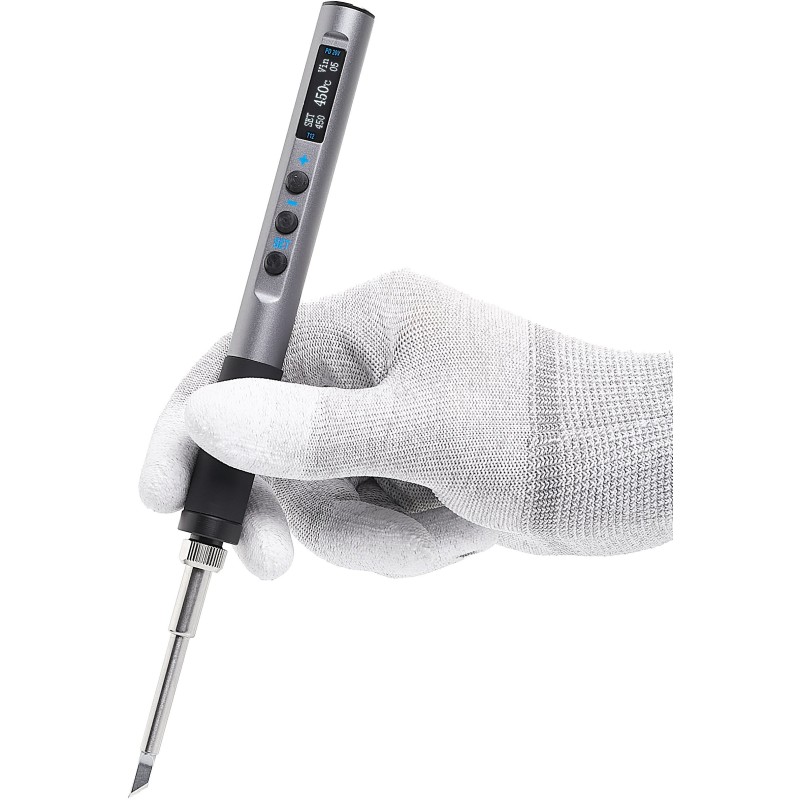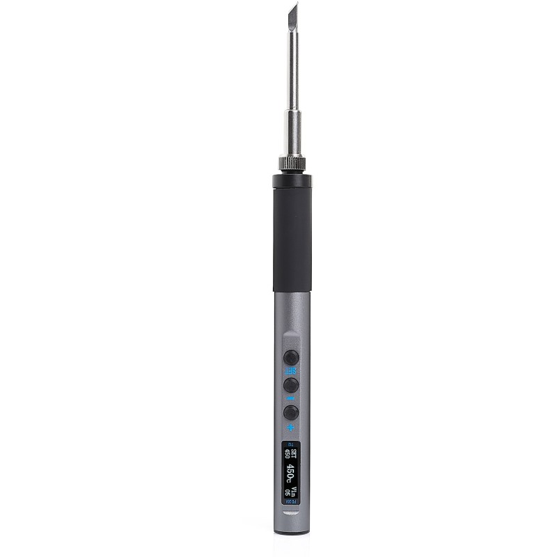 Ausgestattet mit einem OLED-Display ermöglicht der Lötkolben eine laufende Anzeige der Temperatureinstellungen und der Stromquelle. Dadurch hat der Benutzer die volle Kontrolle über den Lötprozess, was für das Erreichen bester Ergebnisse entscheidend ist.