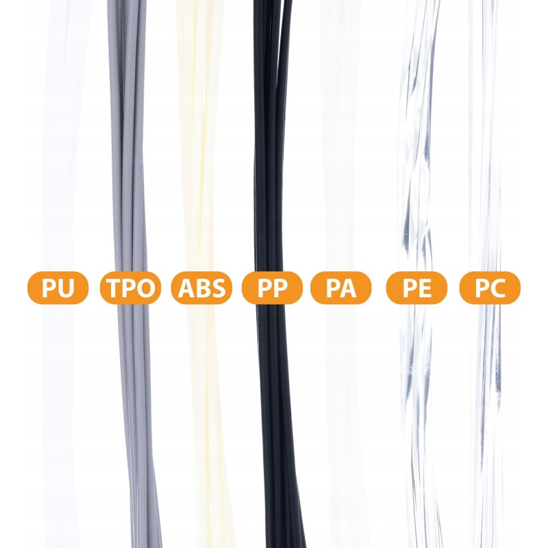 • ✔️ Kunststoffarten: PU, TPO, PC, PP, PE, ABS, PA