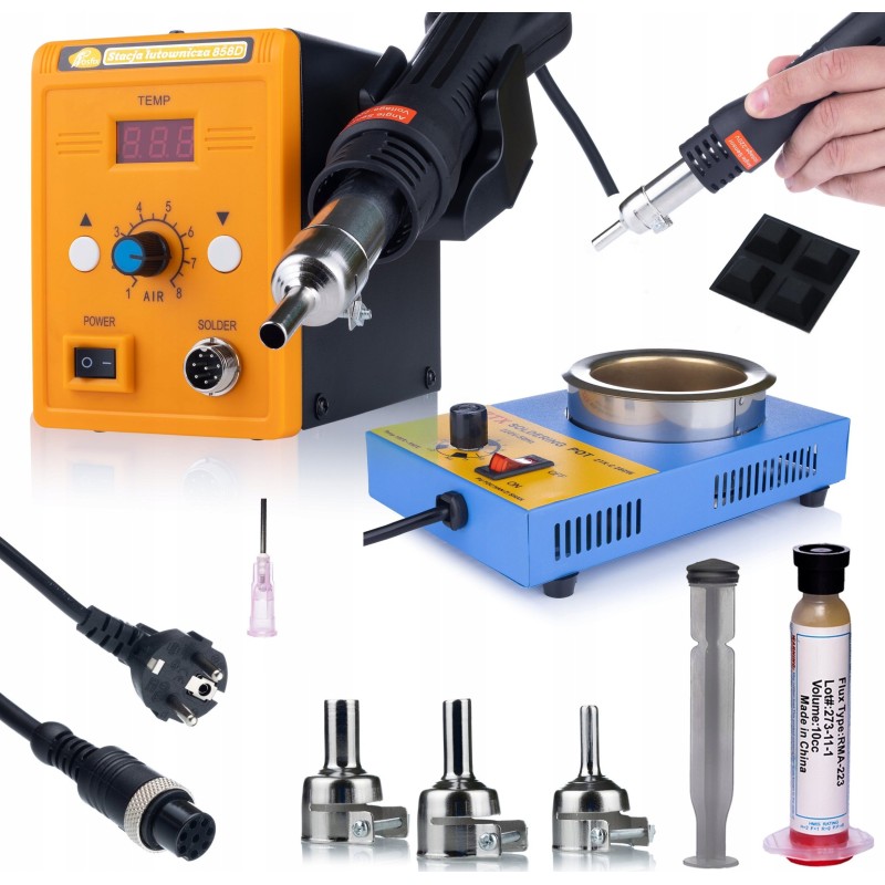 Rosfix SET HEISSLUFT-LÖTSTATION ROSFIX 858D DÜSEN + LÖTTIEGEL + FLUX RMA-223