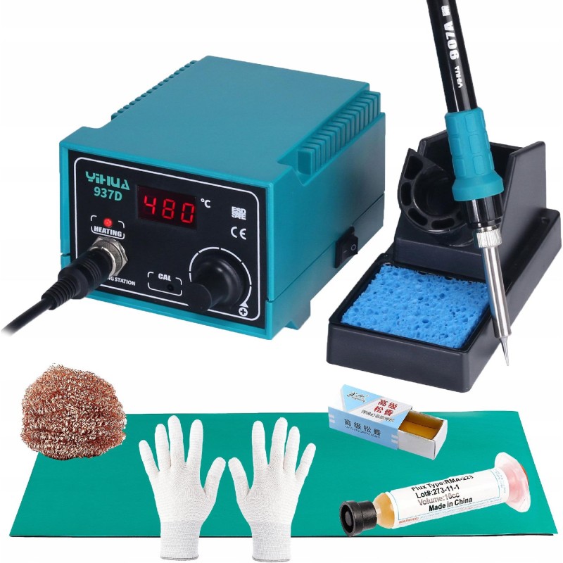 Lötstation im Set mit dem Lötkolben 907A mit einer sehr hohen Spitzenleistung von 60 W, dank der die Spitze in kurzer Zeit auf die gewünschte Temperatur erhitzt werden kann. Mit ESD-SAFE-Schutz, der vor Überhitzung schützt. Ausgestattet mit einem LED-Temperaturdisplay, das die Temperatur in Echtzeit anzeigt. Universelle Lötstation, für die eine große Auswahl an austauschbaren Lötspitzen erhältlich ist. Die 937D ist eines der zuverlässigsten und bewährtesten Modelle, ein hervorragendes Gerät für den Hobbybereich sowie für Werkstätten und die ideale Station, um Ihre ersten Schritte im Löten zu machen. Die Station verfügt über eine Temperaturregelung im Bereich von 200 °C bis 480 °C. Der Aufbau der Station ist unkompliziert, weshalb das Gerät praktisch störungsfrei ist. Die Station verfügt über eine Temperaturstabilisierung, d. h. die eingestellte Temperatur wird während des Lötvorgangs konstant gehalten.