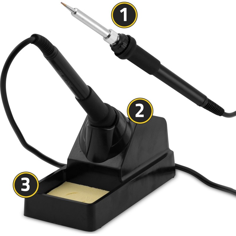 • Der im Sockel des Ständers befindliche Schwamm dient dazu, die Lötspitze von überschüssigem Zinn und Verunreinigungen zu reinigen, die sich während der Arbeit ansammeln können.