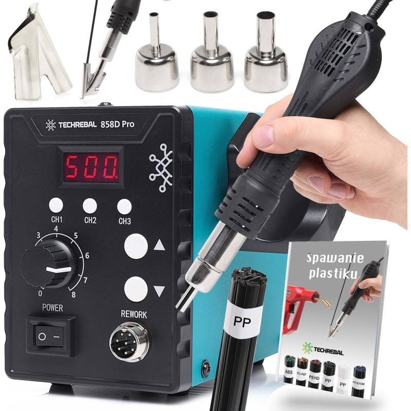 Die Lötstation Techrebal 858D Pro mit Kunststoffschweißset ist ein vielseitiges Werkzeug, das die Funktionen eines präzisen Heißluftlöters und eines Kunststoffschweißgeräts vereint. Hohe Leistung, ein großer Temperaturregelbereich sowie eine spezielle BUT-Düse und 50 g PP-Klebstoff ermöglichen effektive und dauerhafte Reparaturen. Wenn Sie nach einer Komplettlösung zum Löten und Schweißen von Kunststoff suchen, wird dieses Set Ihre Erwartungen erfüllen!