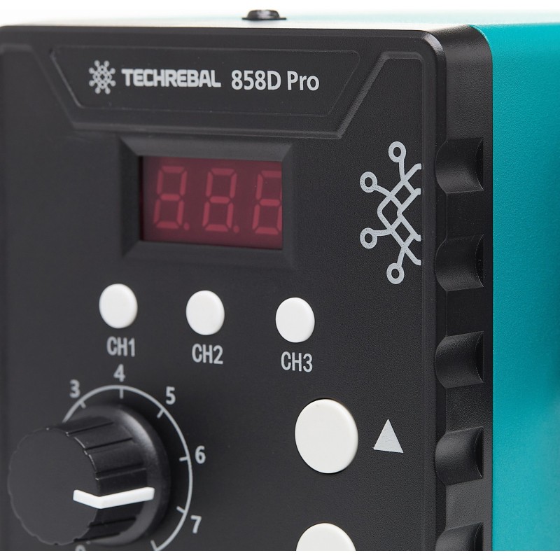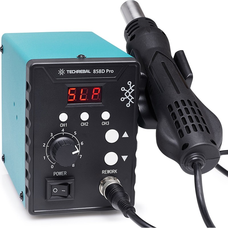 KUNSTSTOFFSCHWEISSGERÄT Heißluftlötkolben Techrebal 858D mit BUT-Düse, 3 Speicherplätze, 700 W