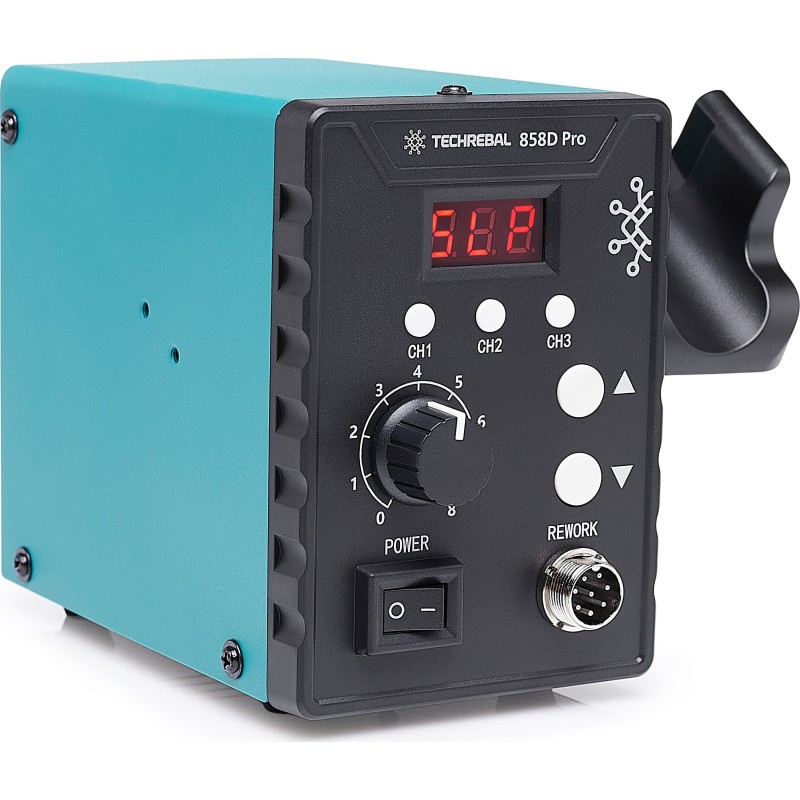 Die Lötstation Techrebal 858D Pro ermöglicht das Arbeiten mit nach oben gerichtetem Lötkolben, was den Komfort und die Flexibilität bei der Anwendung deutlich erhöht. Im Gegensatz zu vielen anderen Modellen, bei denen diese Einstellung gesperrt ist, ermöglicht dieses Gerät die präzise Ausrichtung des Heißluftstroms in jede beliebige Richtung. So kannst du bequem an komplizierten Bauteilen arbeiten.
