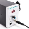 Heißluftlötkolben (Hotair) mit einer Leistung von 700 W. Das Gerät zeichnet sich durch ein kompaktes Gehäuse aus, das wenig Platz beansprucht. Die Station verfügt über eine einstellbare Temperatur von 100 °C bis 500 °C sowie eine einstellbare Gebläseleistung.