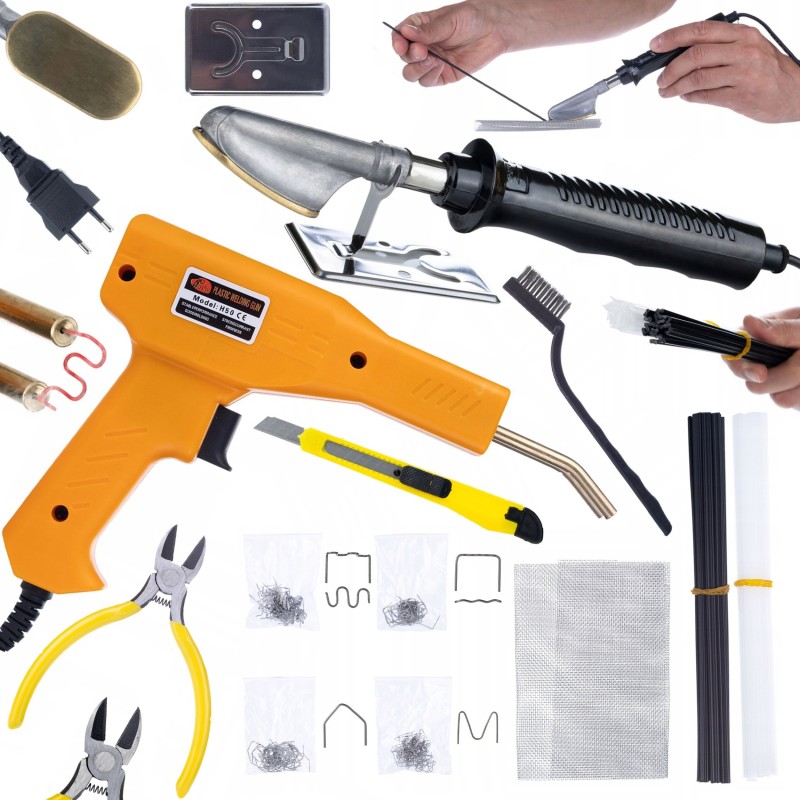 Set zum Glätten von Kunststoff und Heften im Koffer + 200 Heftklammern