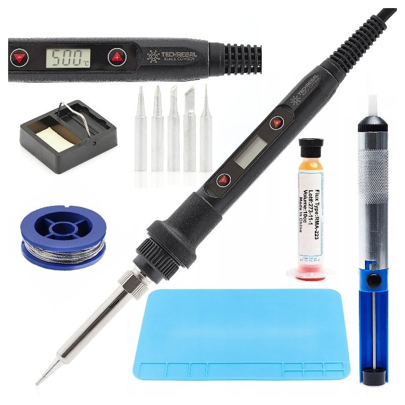 Leistungsstarker Lötkolben 80 W mit LCD-Display, Lötmatte und Flussmittel