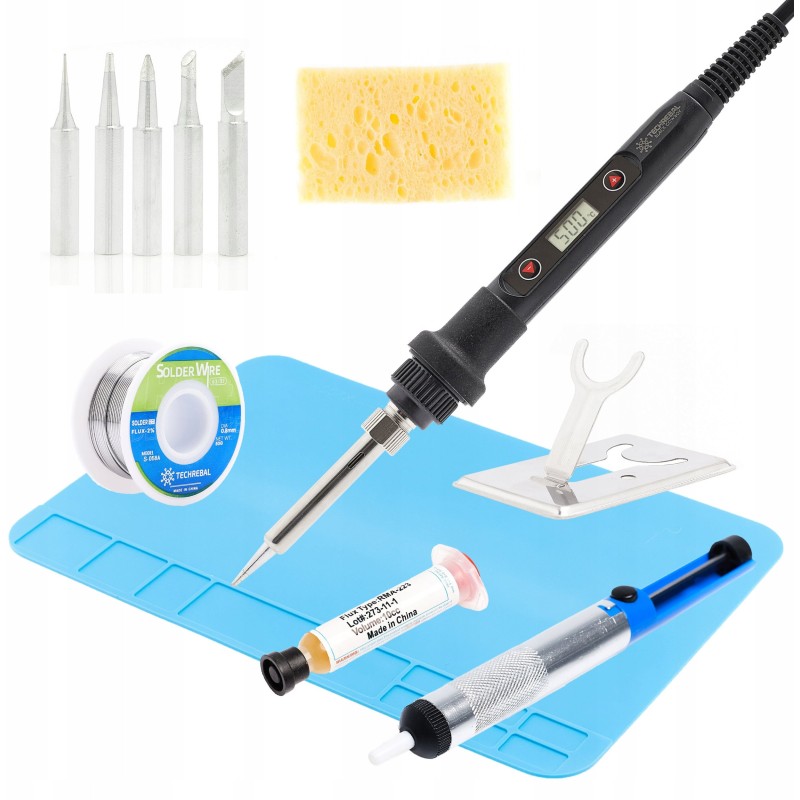 Im Lieferumfang des Lötkolbens ist ein umfangreiches Zubehörset enthalten, das 6 Universal-Lötspitzen, einen Spitzenreiniger, einen Lötkolbenständer, das Flussmittel RMA-223, Lötzinn Sn45Pb55, einen Lötabsauger sowie eine antistatische Silikonmatte mit Organizer umfasst. Damit haben Sie alles, was Sie brauchen, um sofort nach dem Kauf mit der Arbeit zu beginnen.