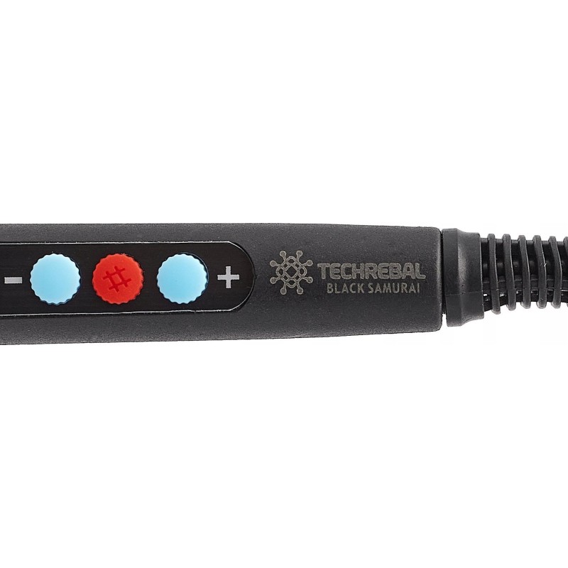Black Samurai, das Flaggschiff unter den Lötkolben von Techrebal, ein schwarzer Krieger, der sich für die meisten Lötarbeiten eignet. Hervorragende Verarbeitungsqualität kombiniert mit einem schönen Design, das selbst den anspruchsvollsten Nutzer zufriedenstellt. Ein professioneller, leistungsstarker und präziser 60-W-Lötkolben mit einstellbarer Temperatur im Bereich von 180 °C bis 500 °C, ein tragbares Gerät mit präzisem Display, das sehr schnell auf die eingestellte Temperatur aufheizt.