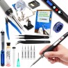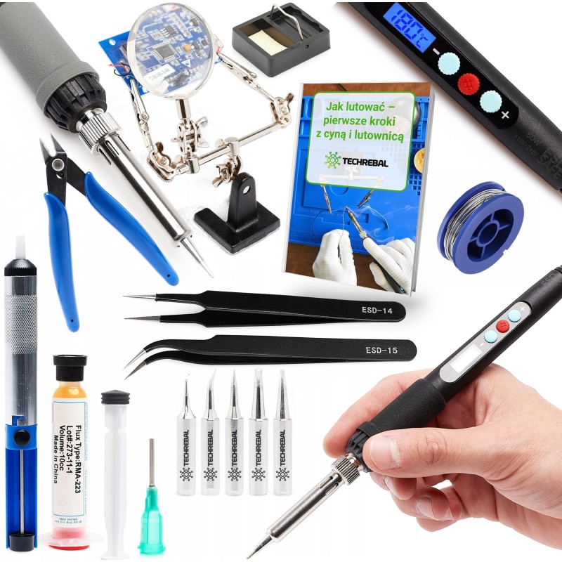 Großes Set: Präzisionslötkolben 60 W Techrebal „Black Samurai“ TBS60W mit Display + 5 Lötspitzen + Lötständer mit Lupe + Flussmittel + Zubehör