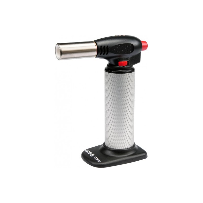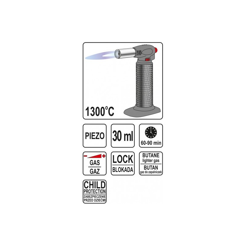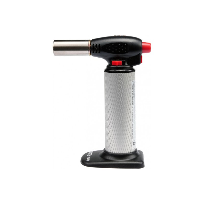 • Gasbrenner mit Piezo-Zündung, betrieben mit Feuerzeuggas (Butan)