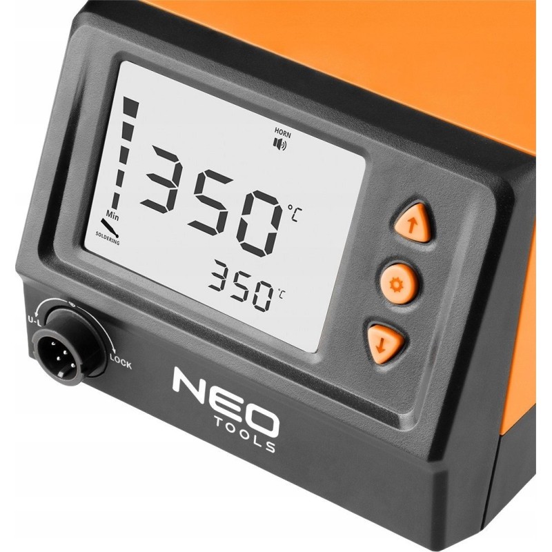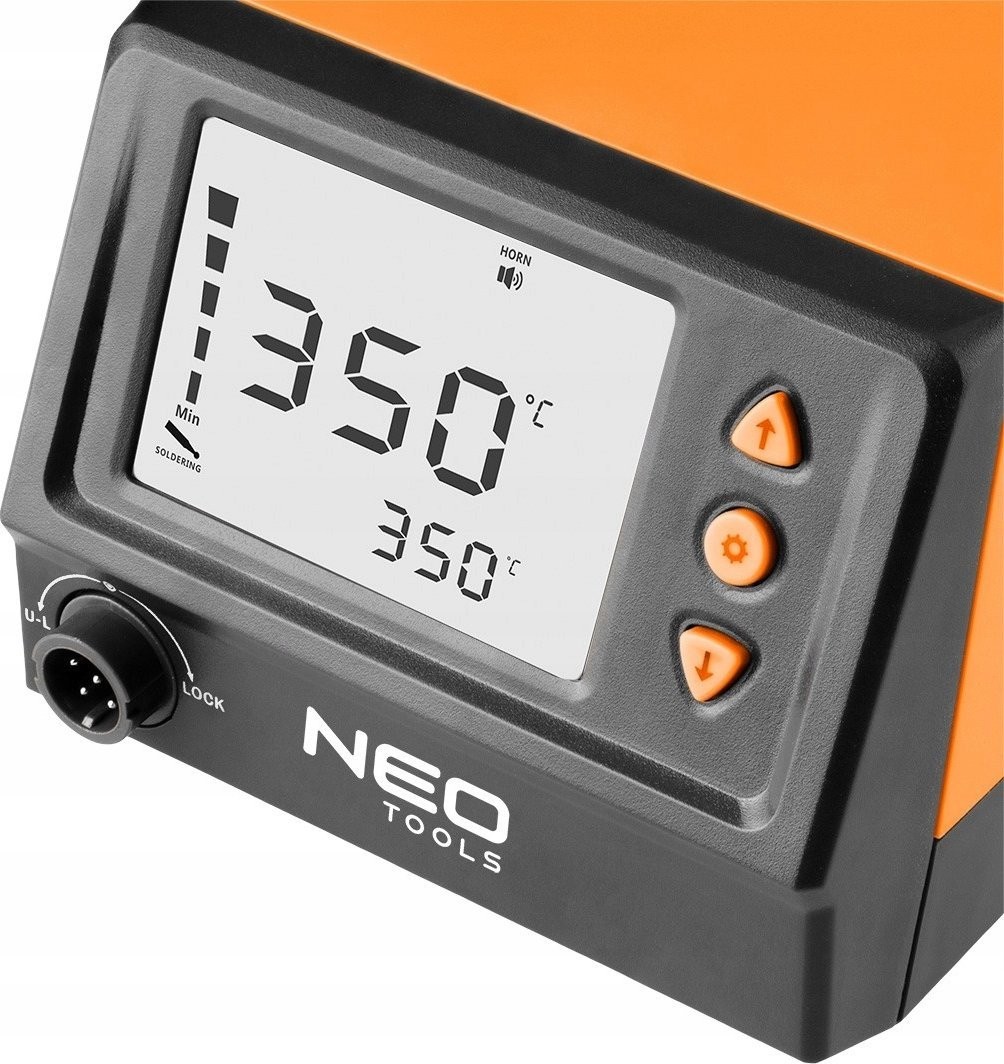 Die Lötstation SL1 mit einer Leistung von 60 W und einer Temperaturregelung im Bereich von 180–480 °C (Modell 19-200) der Marke NEO verfügt über eine Genauigkeit von +/- 2 °C. Ausgestattet mit einem LCD-Display und einer Passwortsicherung, die die Bedienung des Geräts erleichtert. Es verfügt außerdem über eine Abschaltautomatik und einen ESD-Schutz gegen elektrostatische Aufladung. Die Aufheizzeit der Lötstation ist kurz – weniger als 1 Minute. Im Lieferumfang ist ein praktischer Ständer enthalten.