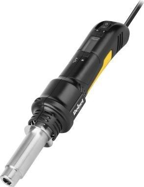 Leistung: 300 W Stromversorgung: 220–240 V~; 50 Hz Max. Luftdurchsatz: 22 l/min Temperatureinstellbereich: 200 °C–500 °C Temperaturregelung: digital LCD-Temperaturanzeige Gewicht: 399 g Kabellänge: 110 cm Im Lieferumfang enthalten: 3 Düsen (5, 8, 12 mm), Ständer