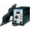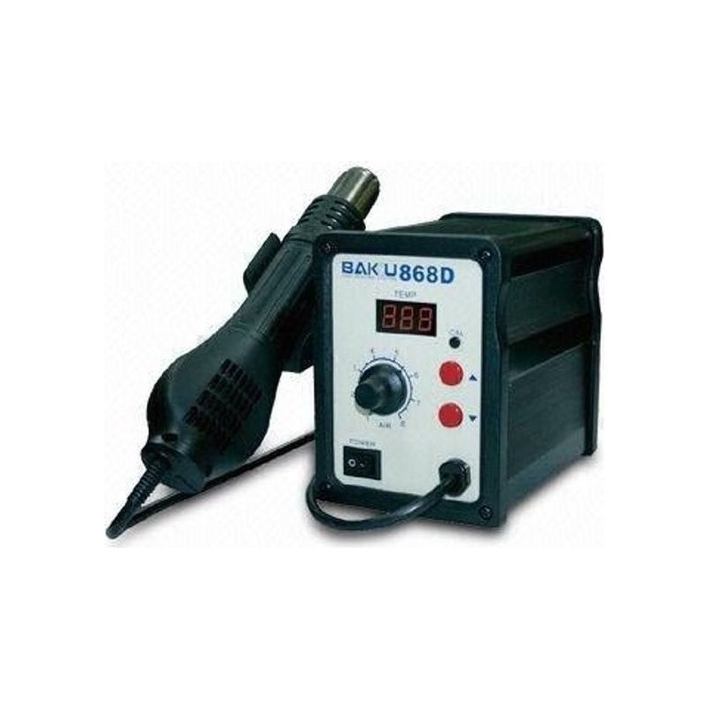 Heißluft-Lötstation. Entwickelt für das Löten von SMD-Bauteilen wie SOIC-, QFP-, PLCC- und BGA-Chips. Eine ausgezeichnete Wahl für die Reparatur von Kleingeräten wie Mobiltelefonen und Videokameras sowie Haushaltsgeräten. Verfügt über ein Antistatik-System, das Schäden an den gelöteten Bauteilen verhindert, sowie über eine Temperaturregelung mittels Drehknöpfen. Außerdem verfügt sie über einen Sensor für das Ablegen des Lötkolbens (nach dem Ablegen wechselt die Station in den Bereitschaftsmodus). Das Display zeigt die aktuelle Temperatur sowie jede Änderung der Einstellung an. Die Heißluftpistole sorgt für effizientes Demontageschweißen. Der Griff kann rechts oder links an der Station angebracht werden. Breites Anwendungsspektrum – die Lötstation eignet sich zum Erwärmen, Schrumpfen, Trocknen, Entfernen von Lack, Entfernen von Klebstoffresten, Enteisen, Vorwärmen und Klebelöten. Im Lieferumfang enthalten sind 3 Düsen in den Größen 5 mm, 8 mm und 10 mm, die eine Anpassung an individuelle Lötvorlieben ermöglichen. Technische Daten: Modell: BAKU BK-858D Leistung: 700 W Einstellbarer Luftstrom: 120 l/min (MAX) Temperatur: 100 °C bis 450 °C Armlänge (mit Kabel): 120 cm Abmessungen: 13,8 x 10 x 15 cm Gewicht: 1,55 kg Im Lieferumfang enthalten: Heißluft-Lötstation mit Heißluftpistole Düsensatz: - Runddüse mit 5 mm Durchmesser - Runddüse mit 8 mm Durchmesser - Runddüse mit 10 mm Durchmesser Ständer für die Heißluftpistole EAN: 5901737147691