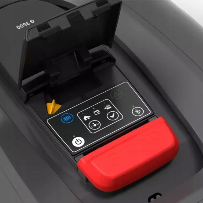 Das integrierte Bedienfeld ermöglicht eine schnelle und einfache Inbetriebnahme des Roboters. Die Akkuanzeige informiert über den Ladezustand, und die Warnleuchte signalisiert etwaige Gefahren.