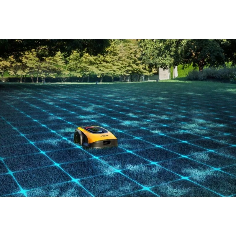 Der Mähroboter Stiga A 750 nutzt die patentierte STIGA Active Guidance System (AGS)-Technologie, die die Mähwege optimiert, indem sie die Verfügbarkeit des GPS-Signals vorhersagt. Dadurch bewegt sich der Roboter effizient über das Gelände und sorgt für ein gleichmäßiges und präzises Mähen.