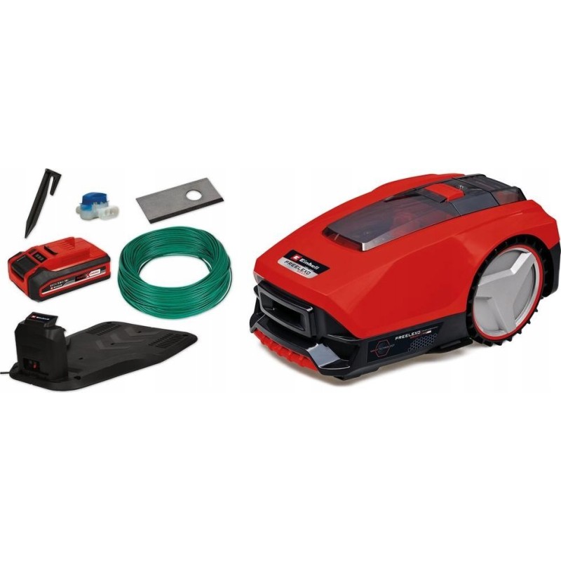 Im Lieferumfang enthalten sind die Ladestation, ein Set mit 3 Ersatzmessern sowie die komplette Ausrüstung für die Installation. Für Rasenflächen bis zu 750 Quadratmetern empfehlen wir ein Begrenzungskabel mit einer Länge von 175 Metern, 245 Befestigungshaken und 4 Klemmen. Der Mähroboter FREELEXO SMART 750 ist außerdem mit einem Power X-Change-Akku mit einer Kapazität von 3,0 Ah ausgestattet.