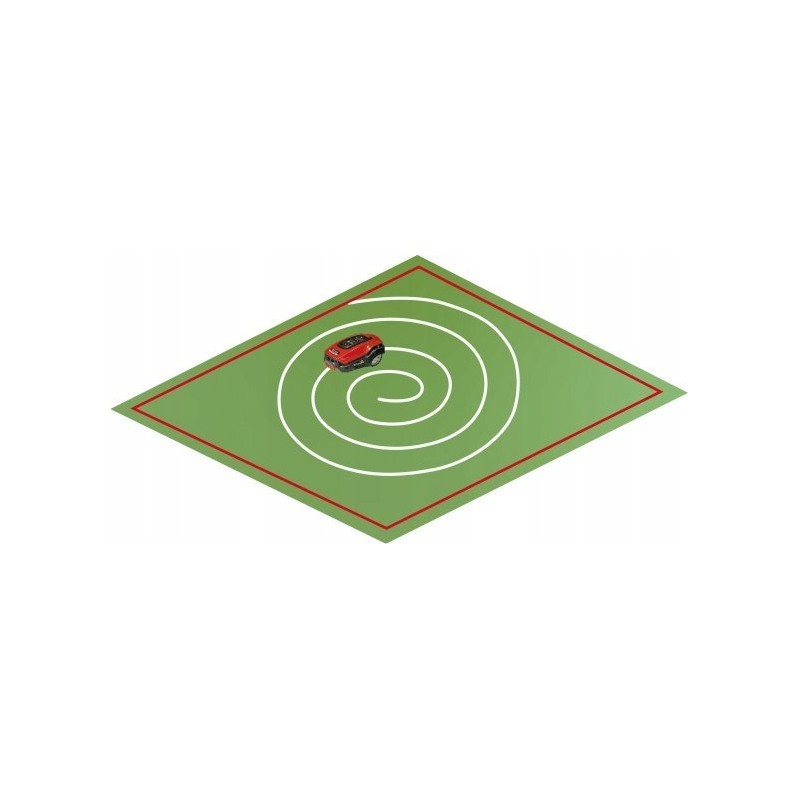 Der automatische Rasenmäher kann spezielle Bereiche mit höherem Gras (z. B. unter einem Trampolin) mithilfe der Punktmähfunktion spiralförmig mähen.