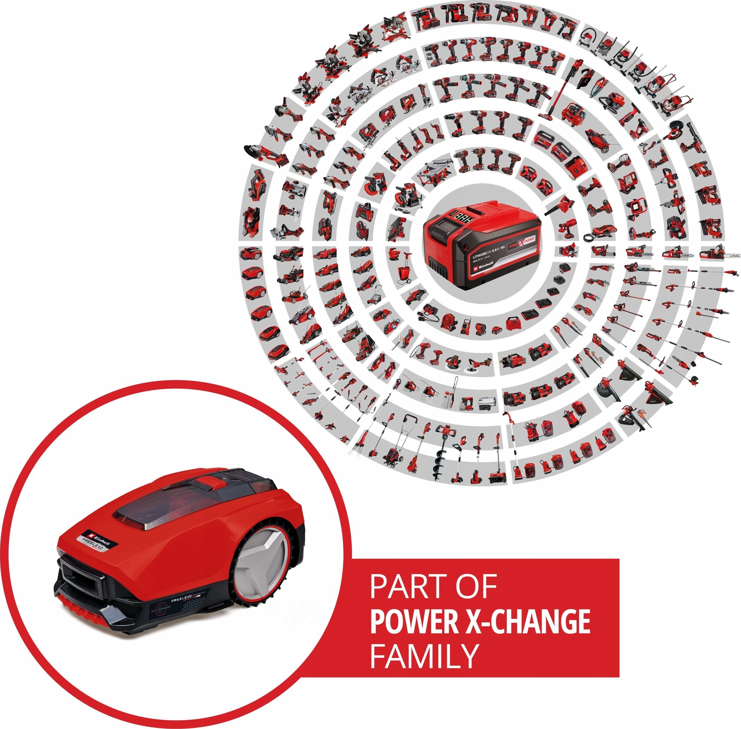 Der Mähroboter wird mit einem Power X-Change-Akku betrieben, der jederzeit in andere Geräte eingesetzt werden kann.
