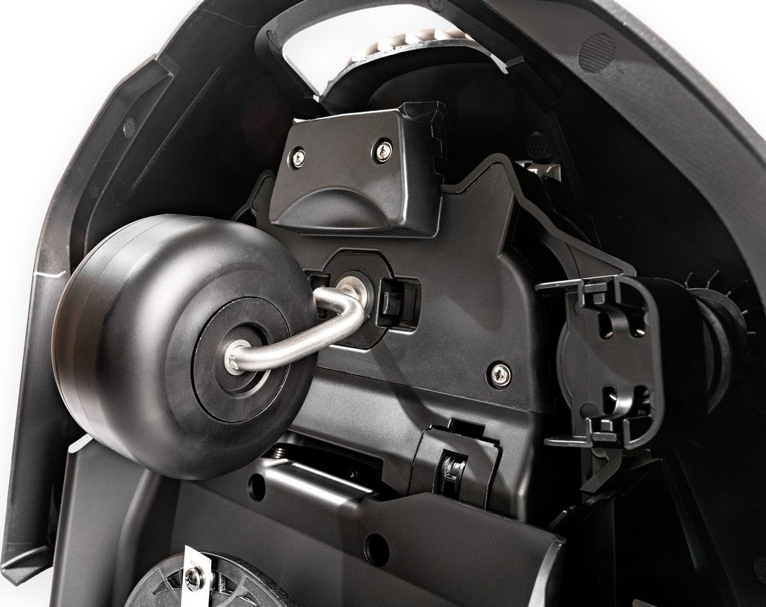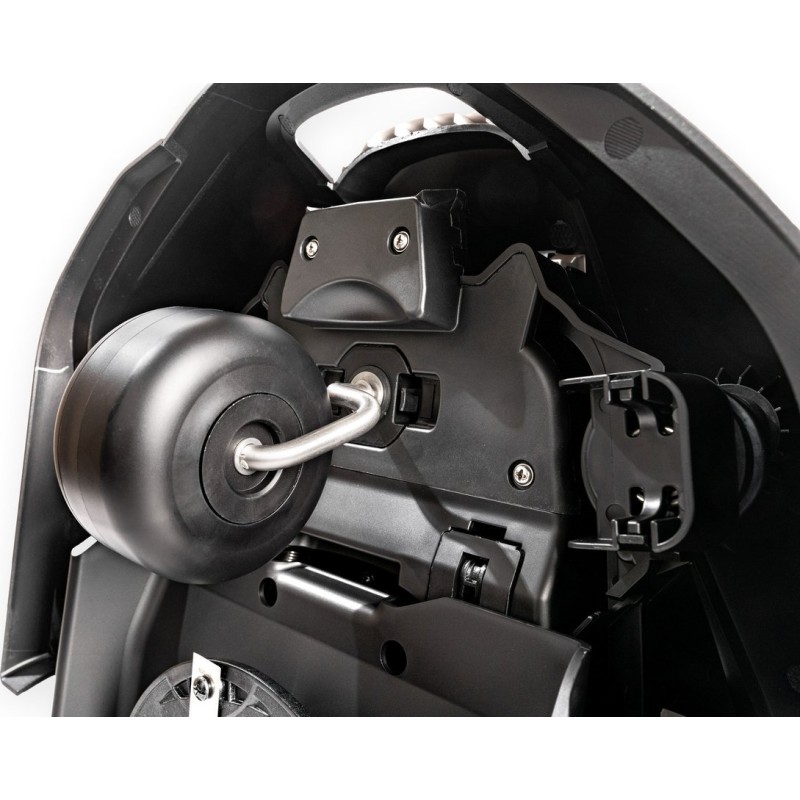 Das mit einem Regensensor ausgestattete Gerät ist in der Lage, Regen zu erkennen. Es unterbricht dann den Betrieb und kehrt zu seiner Ladestation zurück, um ein mögliches Abtragen des Rasens zu verhindern. Der Roboter nimmt den Betrieb wieder auf, sobald sich das Wetter bessert.