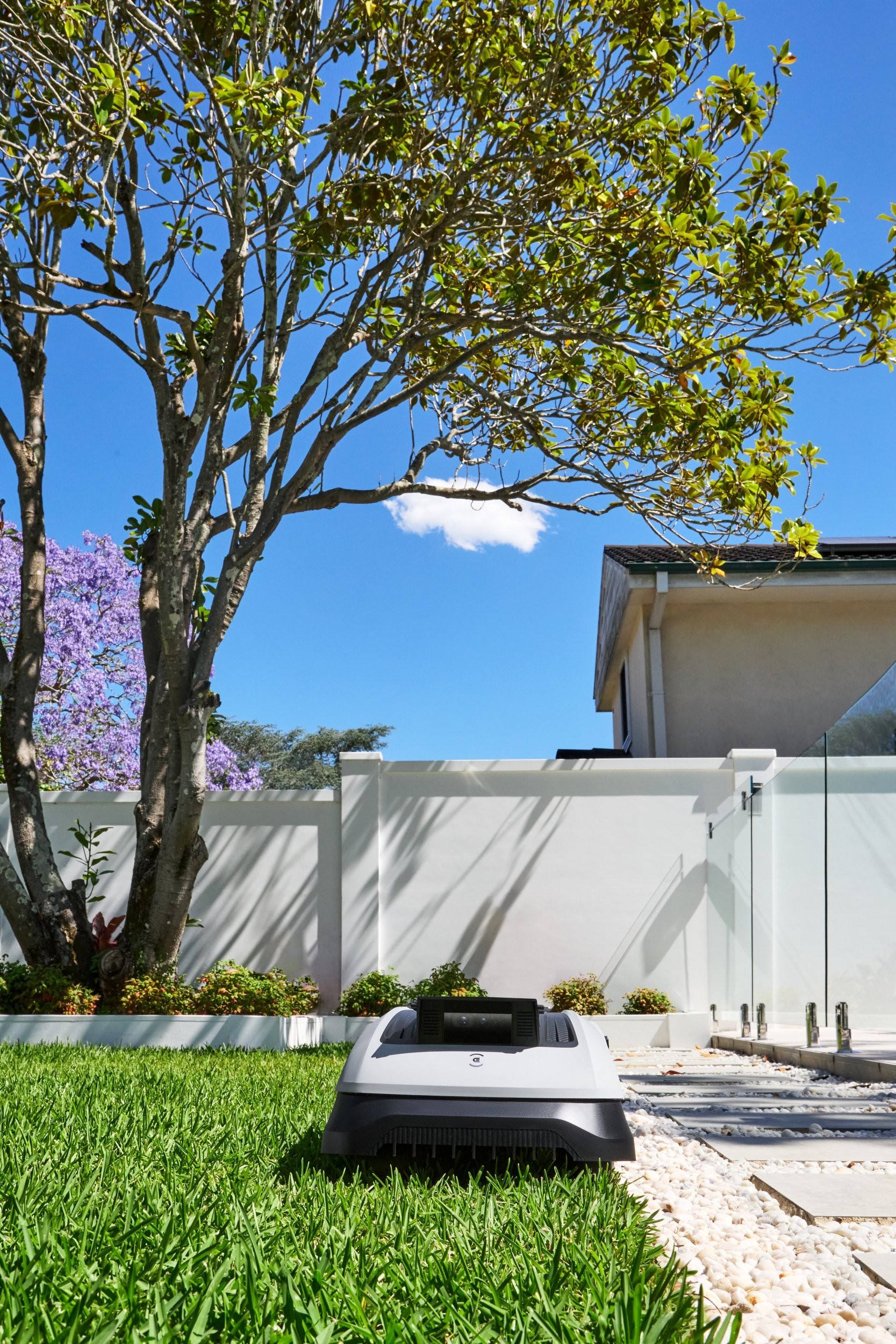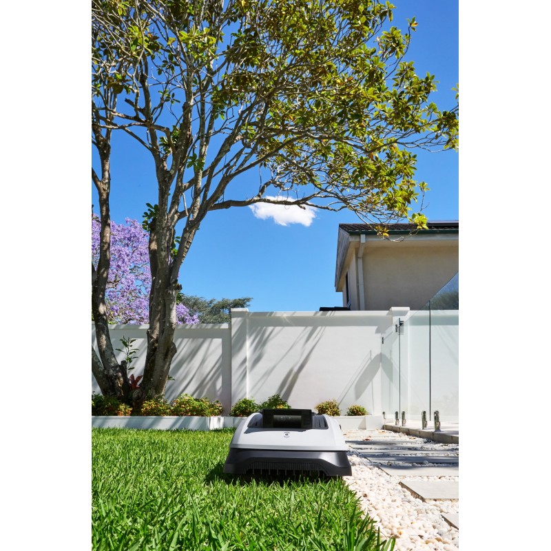 Der GOAT O800 RTK meistert enge Wege mühelos und umgeht Hindernisse, was hervorragende Mähergebnisse auf einer Fläche von bis zu 800 m² gewährleistet. Dank seiner kompakten Abmessungen und seines eleganten schwarz-weißen Designs fügt er sich perfekt in jeden Garten ein.