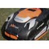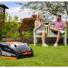 Das mit einem Regensensor ausgestattete Gerät ist in der Lage, Regen zu erkennen. Es unterbricht dann den Betrieb und kehrt zu seiner Ladestation zurück, um ein mögliches Abtragen des Rasens zu verhindern. Der Roboter nimmt den Betrieb wieder auf, sobald sich das Wetter bessert.