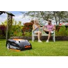 • Der integrierte Regensensor verhindert das Mähen von nassem Gras, was sowohl den Rasen als auch den Roboter schützt