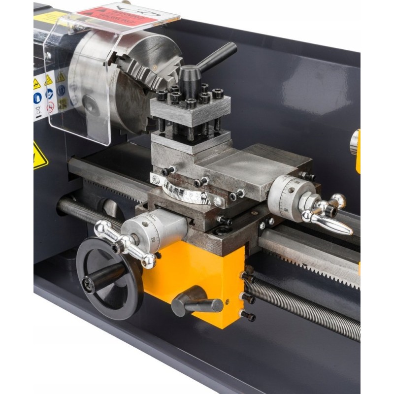 Die Mini-Drehmaschine PM-MTM-550T verfügt über einen starken 550-W-Motor, der unabhängig vom Schwierigkeitsgrad des Projekts für einen schnellen und effizienten Betrieb sorgt. So können Sie selbst die anspruchsvollsten Aufgaben in kurzer Zeit bewältigen.
