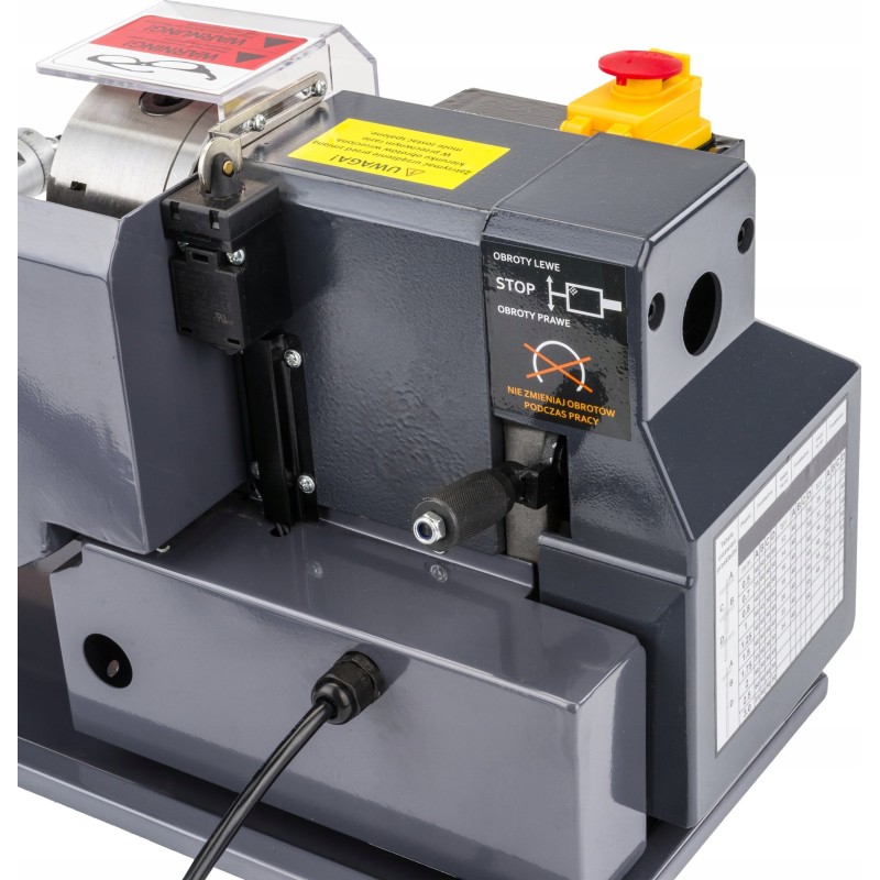 Die Drehmaschine wurde mit Blick auf Langlebigkeit und Sicherheit entwickelt. Ihr Bett aus hochwertigem Gusseisen garantiert hervorragende Verschleißfestigkeit und Stabilität während des Betriebs. Darüber hinaus ist das Gerät mit einer Spritzschutzhaube und einem Not-Aus-Schalter ausgestattet, was die Sicherheit bei der Nutzung erhöht.