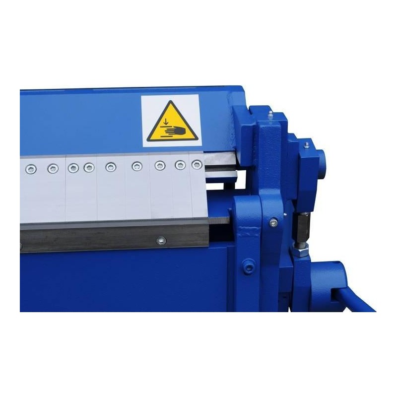 Der Druckbalken ist ein beweglicher Balken, der dazu dient, das Blech in der gewünschten Position zu fixieren. Er ist mit austauschbaren Segmenten ausgestattet, die die Ausführung sehr komplexer Bearbeitungen ermöglichen. Er wird mittels eines Hebels angehoben und abgesenkt. Der Druckbalken ist so konstruiert, dass sein oberer Teil als Führung für die Rollenscheren dient.