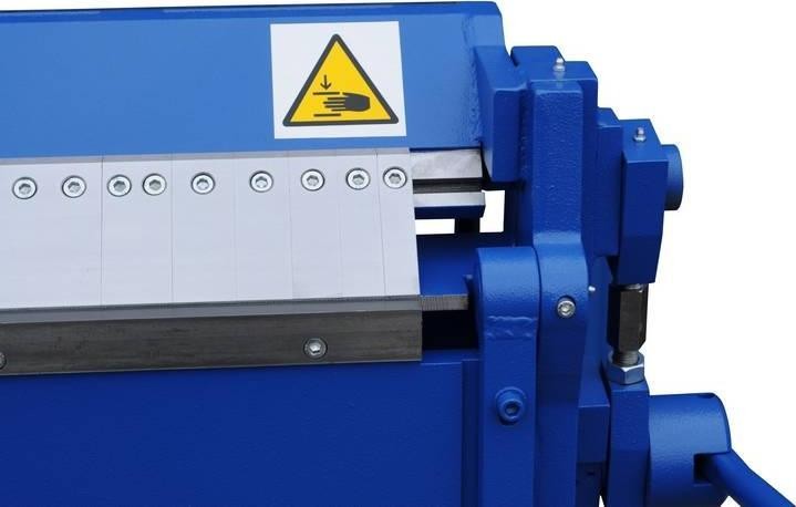 Die Biegemaschine eignet sich insbesondere für die Bearbeitung von Kaminabdeckungen, Dachüberständen und Abschlüssen von Brandschutzwänden. Der Druckbalken ist mit geteilten Segmentmessern mit den Abmessungen 25/30/35/40/45/50/75/100/150/200/250/270 mm ausgestattet. Die Messer sind aus Qualitätsstahl gefertigt, der einen langjährigen Betrieb der Biegemaschine unter Beibehaltung der entsprechenden Biegeparameter gewährleistet.