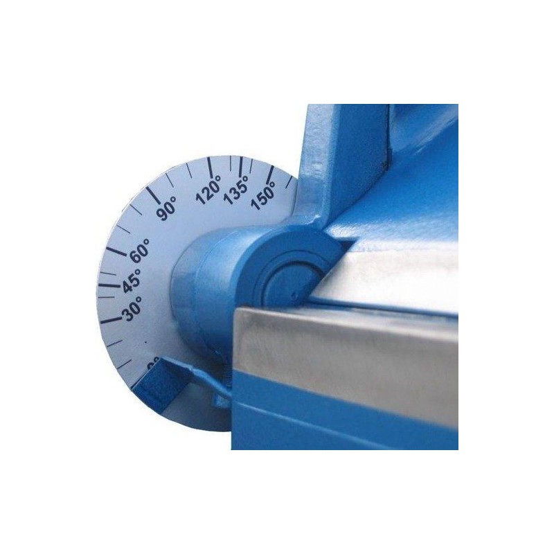 Der Biegevorgang erfolgt durch Drehen des Biegebalkens um einen bestimmten Winkel mithilfe eines Griffs. Ein Gasdruckzylinder unterstützt das Anheben des Biegebalkens. Ein Winkelmesser, der von vorne gesehen auf der linken Seite der Biegemaschine angebracht ist, zeigt den aktuellen Biegewinkel des Blechs an.