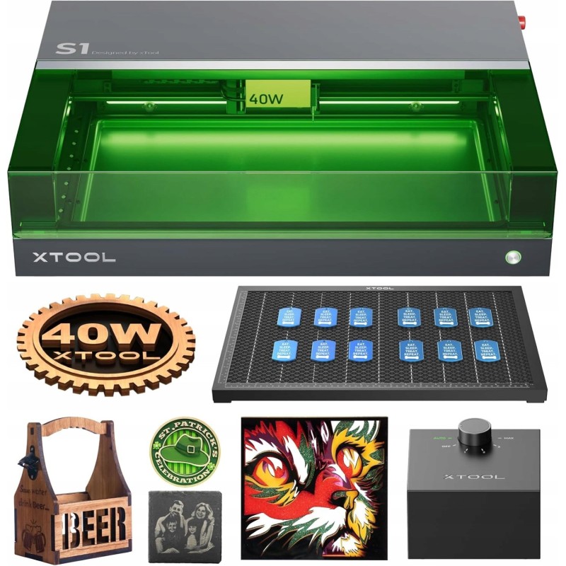xTool S1 Lasergravurmaschine 40 W, 600 mm/s, Arbeitsbereich 498 x 319 mm