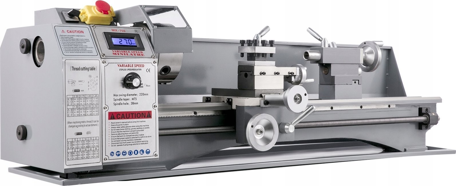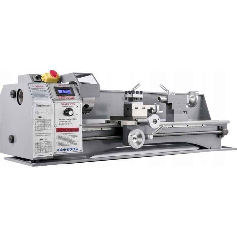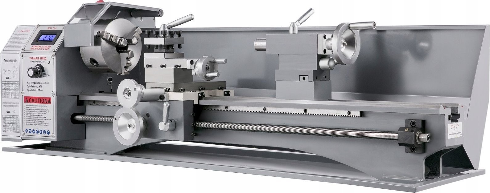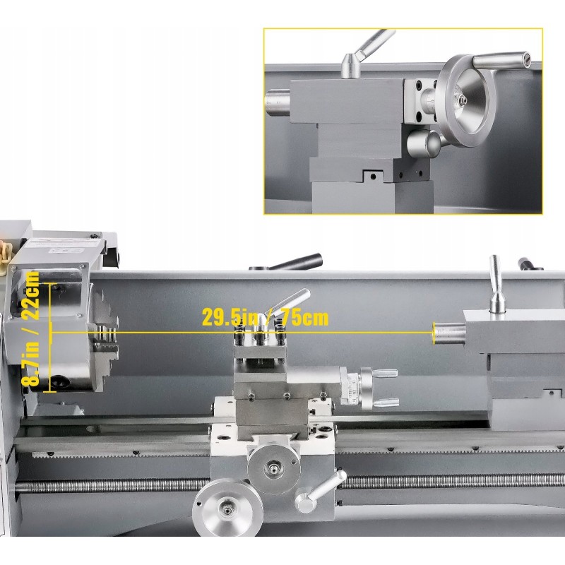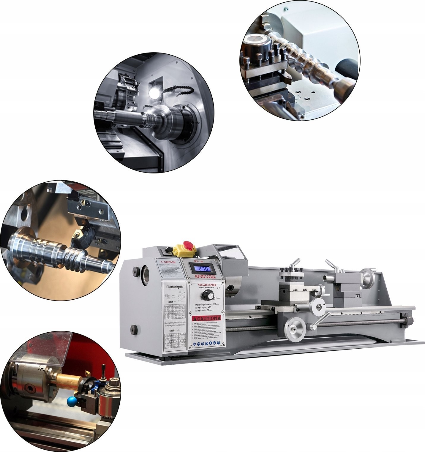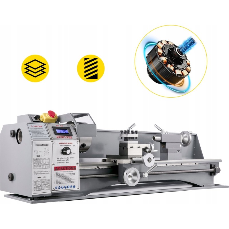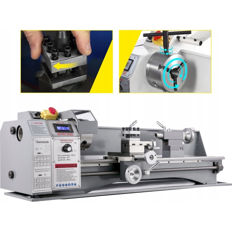 • Die präzise Mini-Metall-Drehmaschine mit den Abmessungen 220 x 750 mm verfügt über einen 1,1-kW-Motor, eine Dreifach-Spannzange, einen MT5-Spindelkonus und einen MT2-Reitstockkonus. Sie ist für verschiedene Arten der Metalldrehung ausgelegt und einfach zu bedienen.