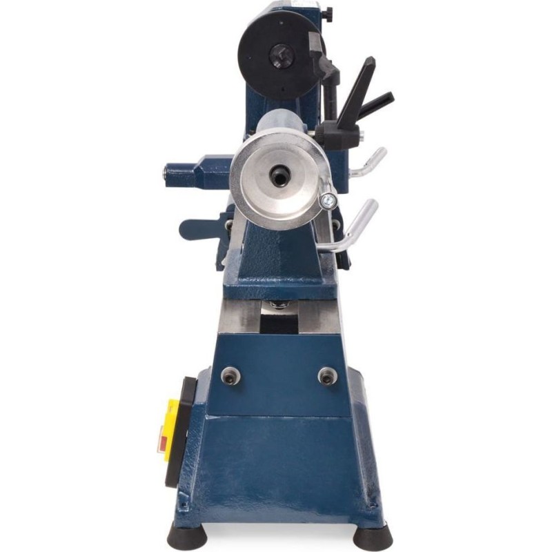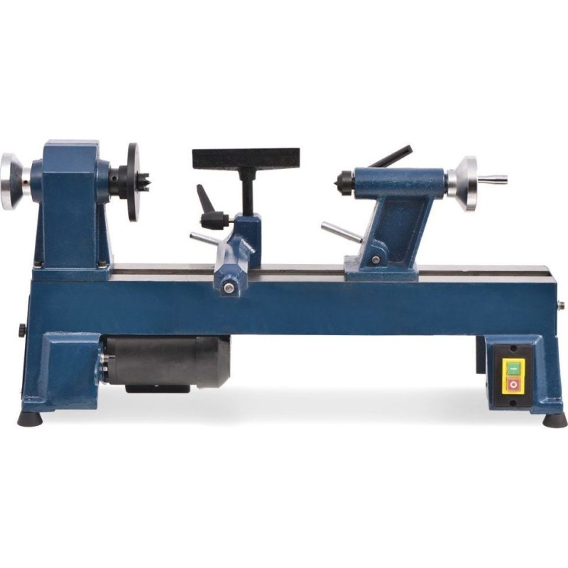 Unsere robuste Holzdrehmaschine eignet sich zum Drehen von Spindeln und Stirnflächen. Sie ist ein sehr nützliches Werkzeug sowohl für Heimwerker als auch für Profis. Diese benutzerfreundliche Drehmaschine ist aus verwindungssteifem Gusseisen gefertigt und arbeitet reibungslos und präzise. Sie ist mit einem leistungsstarken 500-W-Motor ausgestattet und bietet 5 Drehzahlstufen für vielfältige Aufgaben. Die Drehzahl wird über einen Keilriemen geregelt. Der Reitstock lässt sich schnell und einfach an Werkstücke unterschiedlicher Länge anpassen. Der verstellbare Werkzeughalter sorgt für den richtigen Halt der von Ihnen verwendeten Drehwerkzeuge. Der Reitstock und der Werkzeughalter lassen sich mit Hilfe von Cam-Action-Klemmen am Drehmaschinenbett befestigen.Material: GusseisenAbmessungen: 750 x 200 x 380 mm (L x B x H)Bett-Höhe: 200 mmKabellänge: 850 mmGewicht: 36,15 kg Stromversorgung: 230 V~, 50 Hz Motorleistung: S2 500 W Spindeldrehzahl: 700, 1000, 1430, 2000, 2750 U/min.Drehzahlregelung über KeilriemenSpindelabstand: 450 mmSpindelgewinde: M33 x 3,5Maximaler Drehdurchmesser: 250 mmKegelspannfutter: MT2Der verstellbare Reitstock und der Werkzeughalter lassen sich über ein Cam-Action-Spannsystem befestigenLäuft ruhig und leise...
