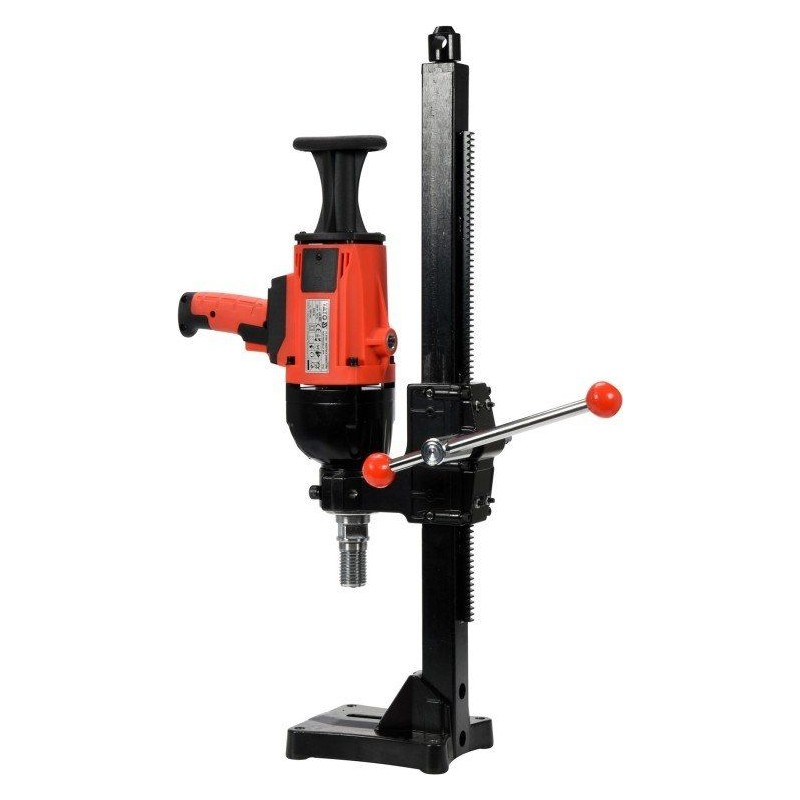 Im Lieferumfang des Geräts ist ein Stativ mit Getriebe enthalten, dank dem das Bohren in harten Materialien wie Granit oder Beton ohne Kraftaufwand möglich ist.