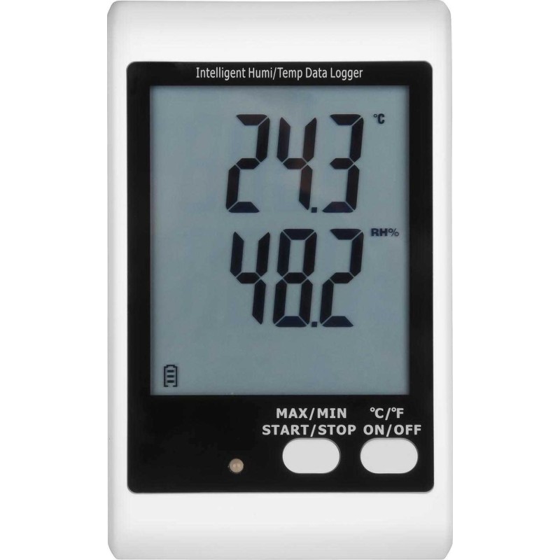 Dieses professionelle digitale Thermo-Hygrometer ermöglicht präzise Feuchtigkeits- und Temperaturmessungen für wissenschaftliche und industrielle Zwecke. Das Messgerät kann die Luftfeuchtigkeit im Bereich von 0 bis 100 % mit einer Genauigkeit von 3 % und die Temperatur im Bereich von -30 bis 70 °C mit einer Toleranz von 0,5 % messen. Der integrierte Speicher des Geräts ermöglicht die Speicherung von bis zu 32.000 Messungen.