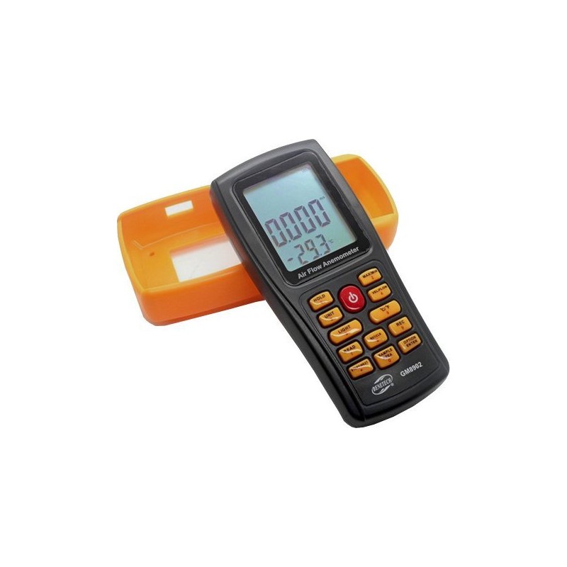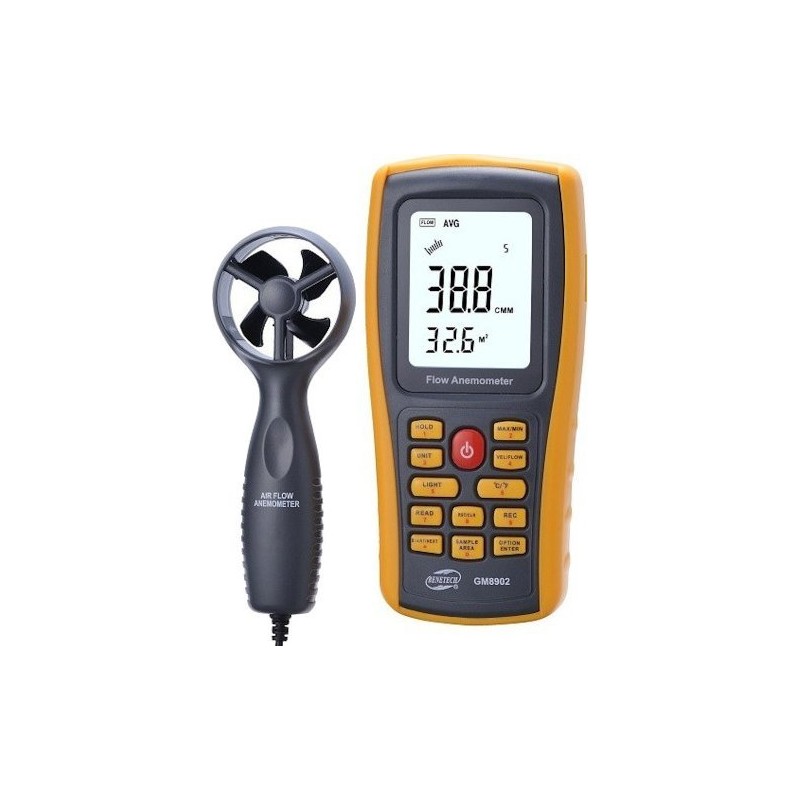 Der Anemometer Benetech GM8902 ist ein Flügelrad-Windmesser, der zur Messung von Luftbewegungen und Lufttemperatur dient. Die Konstruktion des Geräts basiert auf einem Rotor, der sich unter dem Einfluss von Luftbewegungen dreht. Der Windmesser findet in verschiedenen Industriezweigen sowie im Leistungssport, wie beispielsweise beim Segeln oder Klettern, Anwendung.