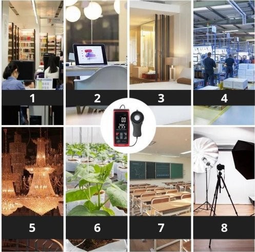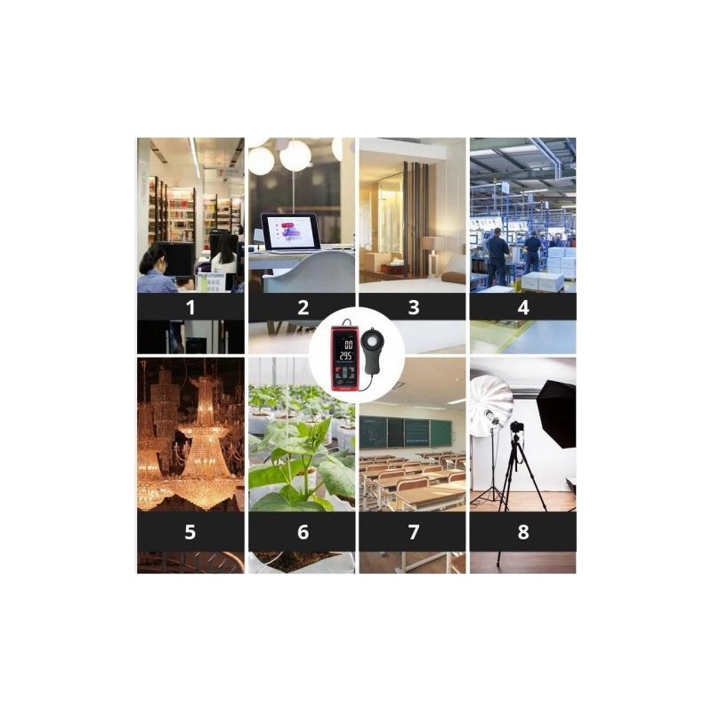 • Messbereich der Beleuchtungsstärke: 0,1 ~ 200.000 Lux (0,1 ~ 20.000 Fc),