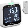 • - Die Messgenauigkeit beträgt +/- 1,5 °C (+/- 2,7 °F), für CO₂ +/- 50 ppm + 5 % und für die Luftfeuchtigkeit +/- 5 %,