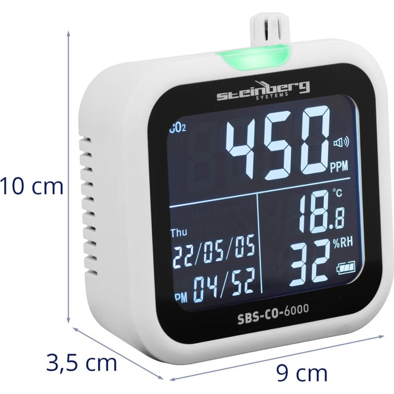 Steinberg CO2-, Temperatur- und Feuchtigkeitsmessgerät mit Datums- und Zeitanzeige, 1–99 %, -20–60 °C CO2-, Temperatur- und Feuchtigkeitsmessgerät