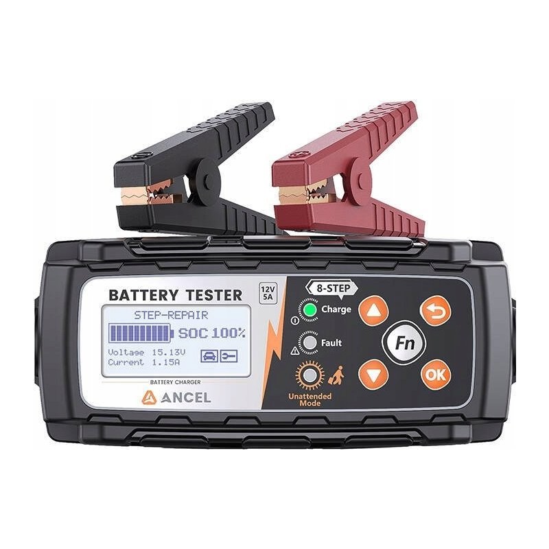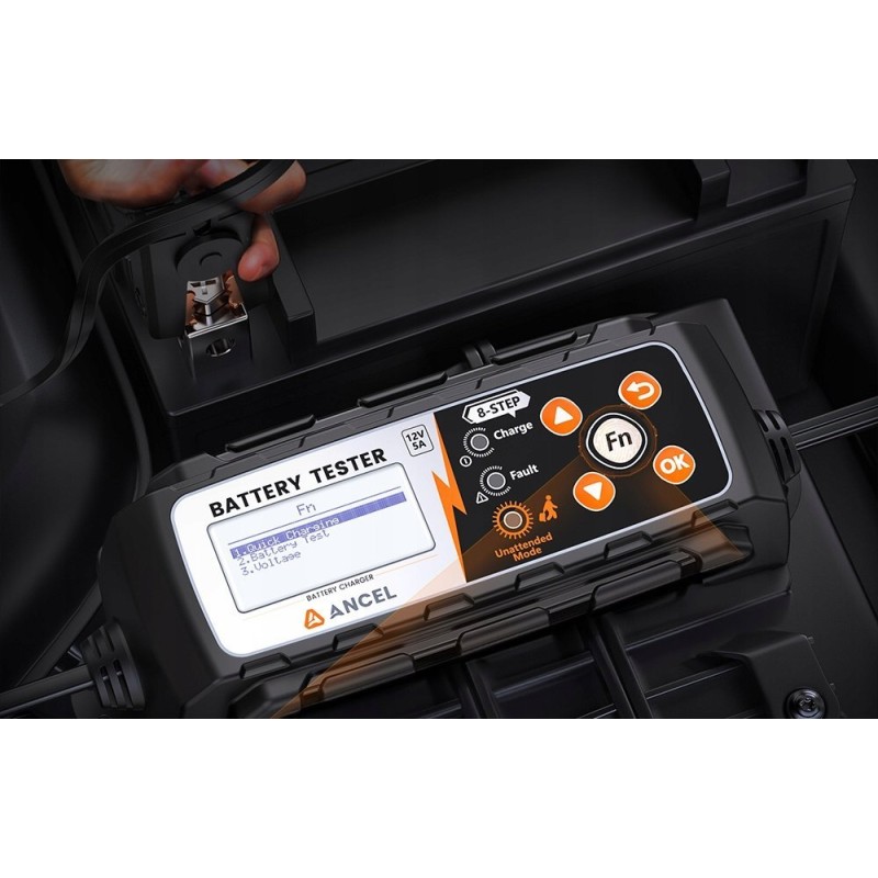 Das Ancel BT521 zeichnet sich durch eine intuitive Benutzeroberfläche mit einem gut lesbaren LCD-Display aus, das detaillierte Informationen zum Akkustatus und zum Ladevorgang liefert. Die Funktion „Fn Quick Start“ ermöglicht den schnellen Start der am häufigsten verwendeten Test- und Ladevorgänge und verkürzt so die für die Bedienung des Geräts benötigte Zeit erheblich.