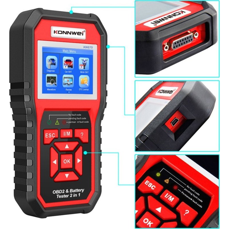 Diagnosegerät KW870, OBD2-Scanner, Konnwei-Batterietester