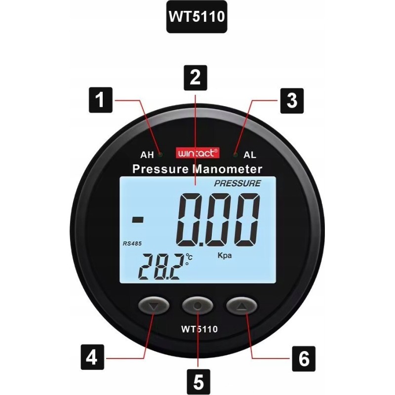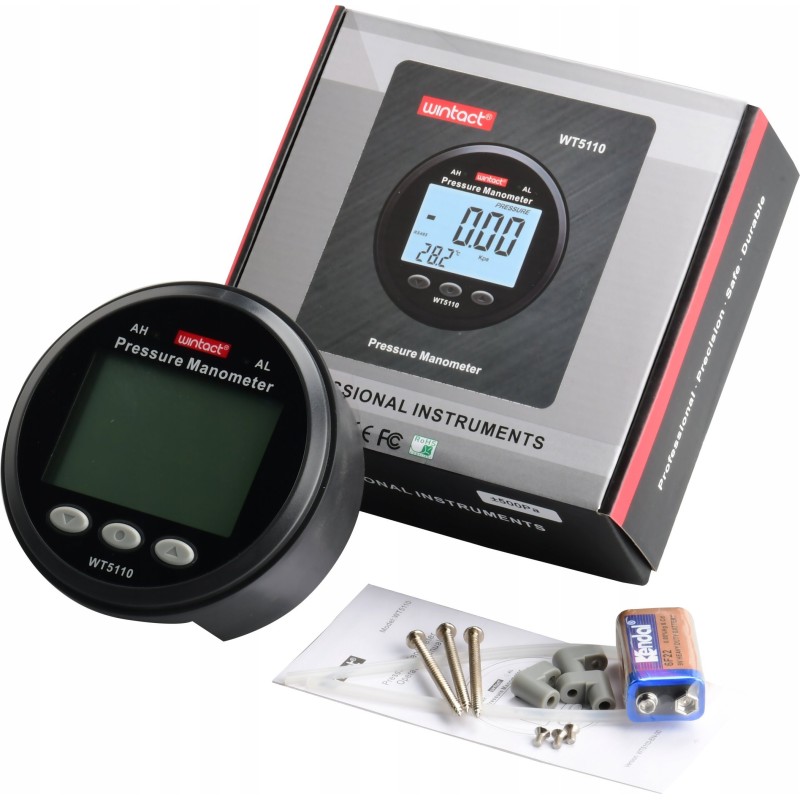 Digitales Manometer Wintact – Druckmessgerät und Unterdrucktester 0–100 kPa mit LCD-Alarm